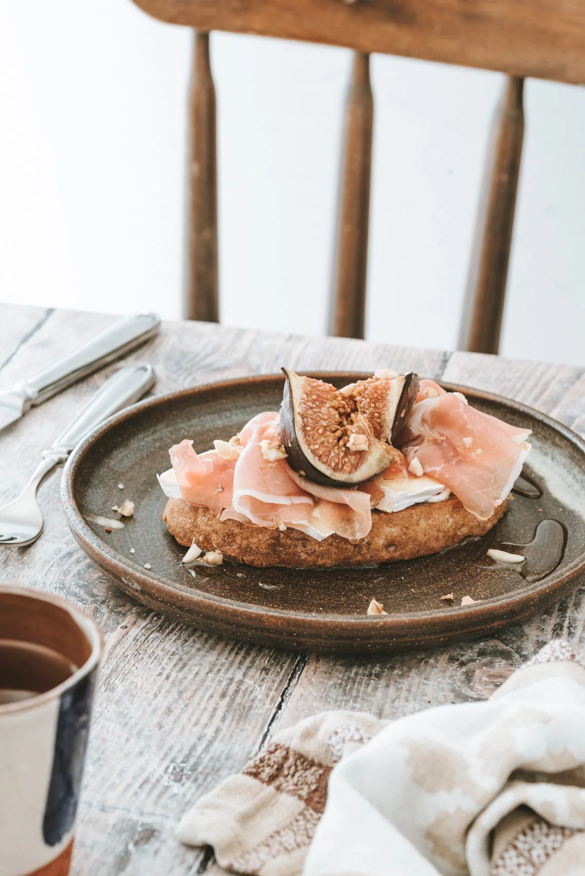 焦糖無花果+藍紋起司+煙燻火腿開放式三明治