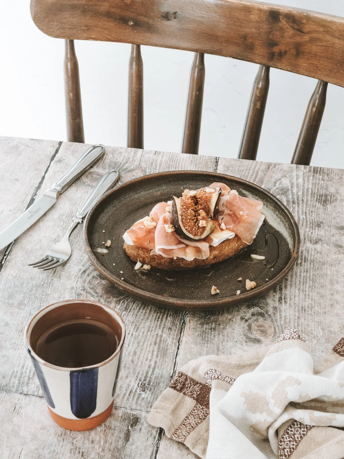 這道焦糖無花果搭配藍紋起司、Prosciutto煙燻火腿製的開放三明治味道融洽合搭、有深淺層次。酥脆麵包滿覆奶油香、藍紋起司風味濃郁入口即化、Prosciutto油脂調和無花果清香,最後以核果加乘口感、再淋上香甜蜂蜜點出甘味,適合當早點或午後茶伴。