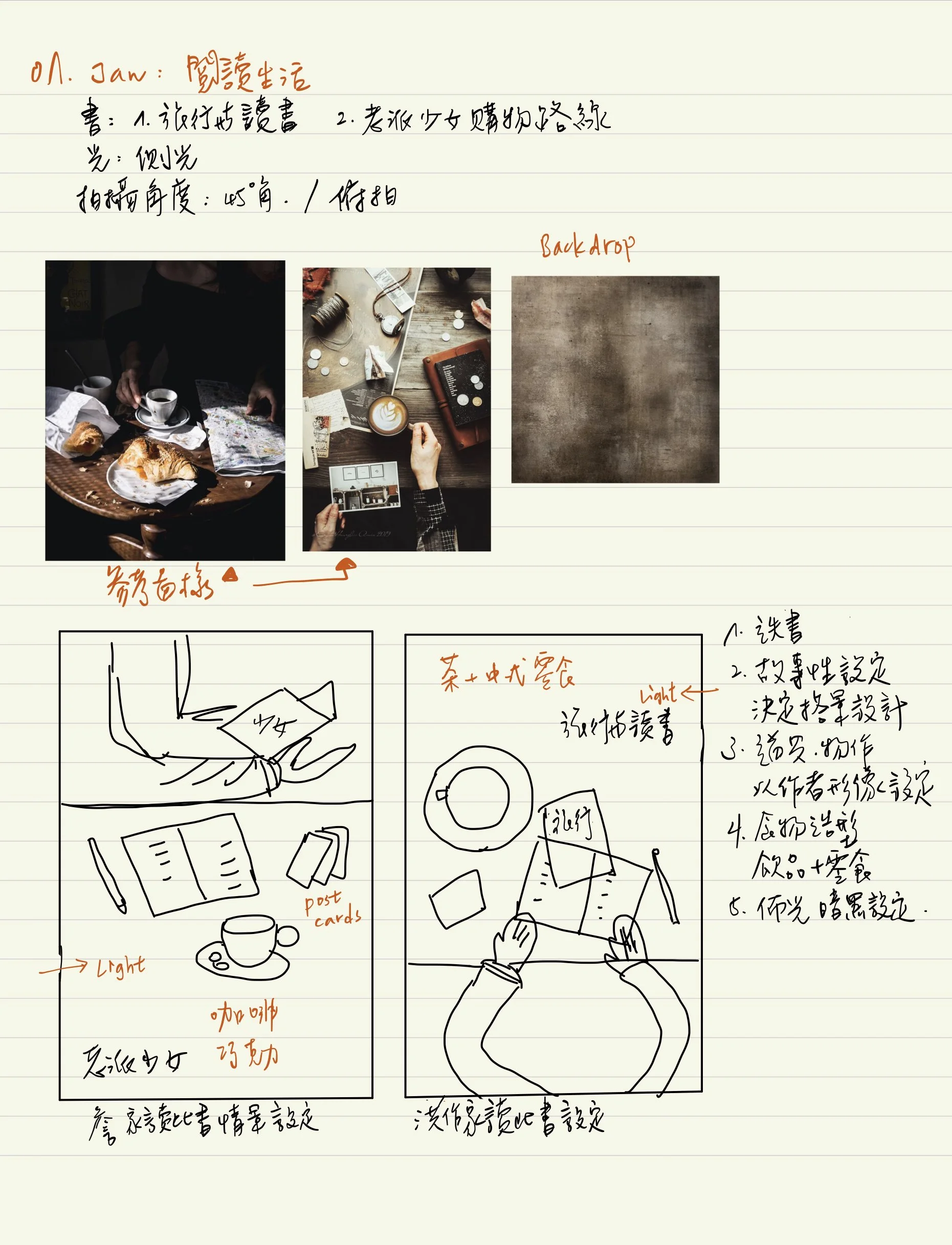 她曾在社群中寫過,去哪座城市旅行時便帶著一位喜歡作家撰寫關於當地的著作前往,彷彿神助般可更融入當地環境與旅行氛圍。因此,我規劃拍攝劇本為洪女士正在安排下一趟的旅行計畫,而旅行目的地正是詹先生書中曾經提及的地點。這麼一想便可增加連結性與天馬行空的想像。