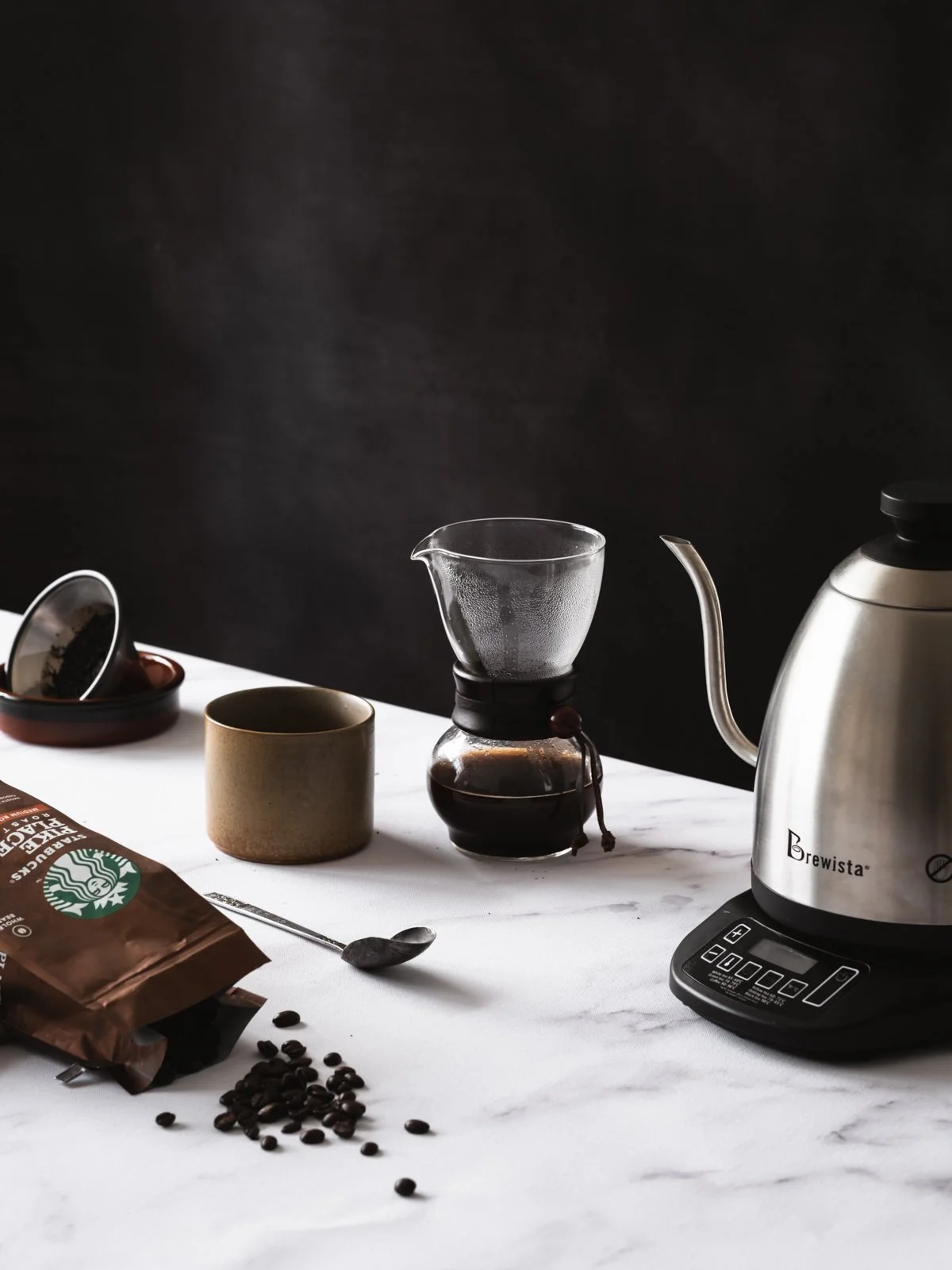 以圖十示範的兩張照片來說,都囊括在 45 度角拍攝範圍內。圖左屬於低 45 度角,右圖為偏高角度的 45 度角。以類似的情境來說,這張照片我更偏好以高角度(右圖)來拍,可以呈現咖啡壺裡研磨好的咖啡粉。我們都知道,咖啡在研磨成粉的過程中以及研磨好後所散發的香氣很是迷人,如果可以把這的部分表達出來,也許可以透過視覺增加嗅覺上的想像,讓照片更引人入勝。