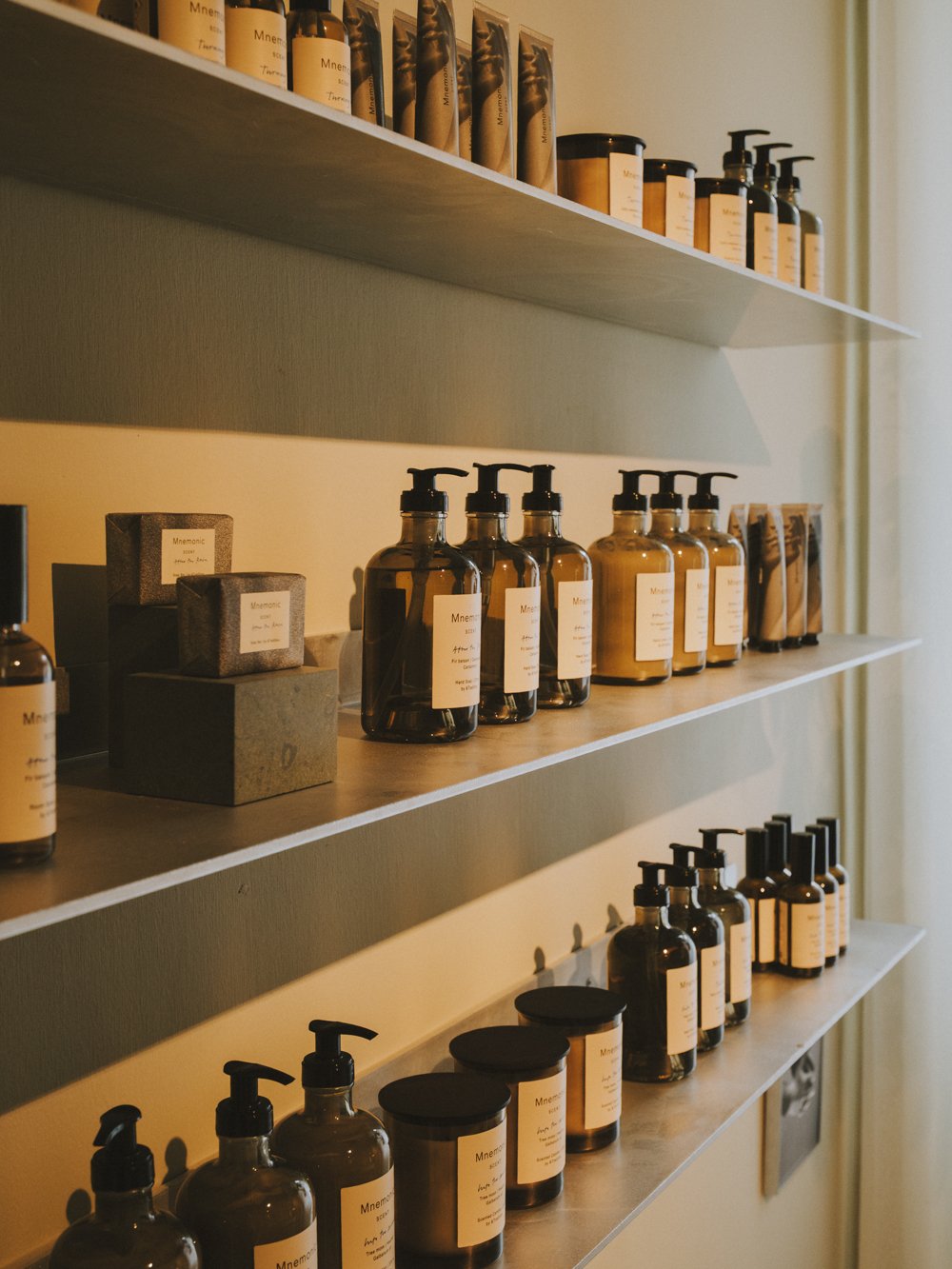 命名為 Mnemonic 的產品系列,是透過嗅覺強調想像的感官空間,產品有洗手乳、護手霜、肥皂、香氛蠟燭與空間噴霧,每種產品皆有三款來自大自然靈感的自然香氣:After the Rain、Into the Moor 與 Turning Tide。在搭配植栽的舒適空間裡,呈現出細緻感官的層次,從視覺延伸到嗅覺以及肌膚觸覺的多維體驗。在試用後,我對 Turning Tide 這款香氣留下特別的記憶,以潮汐為靈感,融合鹹味、草本與微甜感的設計,雖然與常有的花香調性不同,卻勾起一段彷彿熟悉卻又有點陌生的遙遠記憶,延伸為全然的五感體驗。